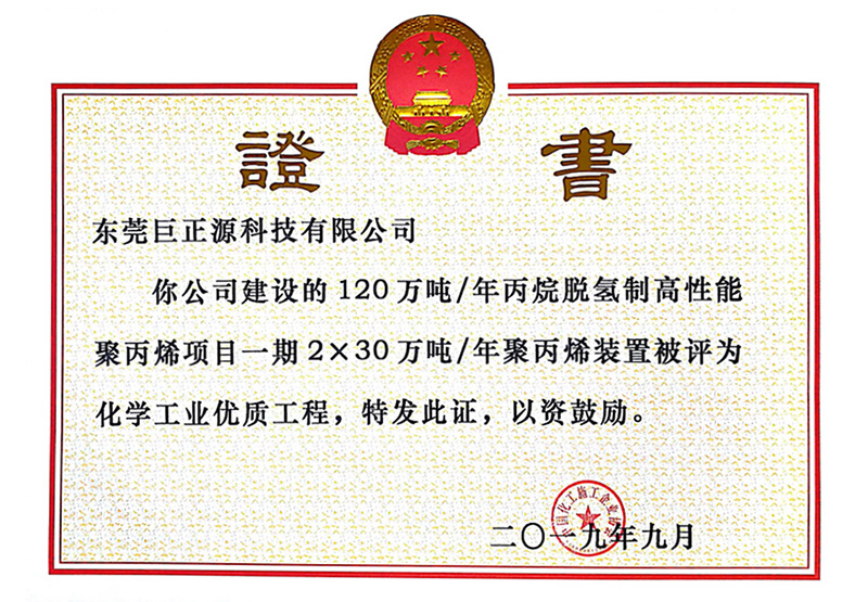 近日,中國化工施工企業(yè)協(xié)會公布全面提升工程質(zhì)量創(chuàng)建優(yōu)質(zhì)精品工程活動成果。巨正源公司投資建設(shè)的“120萬噸/年丙烷脫氫制高性能聚丙烯項目”一期2×30萬噸/年聚丙烯裝置獲評全國“化學(xué)工業(yè)優(yōu)質(zhì)工程”。