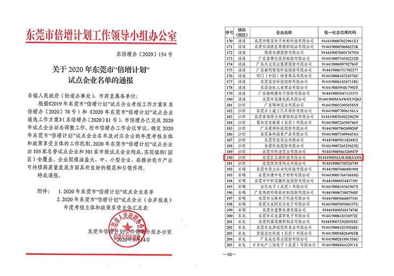 “倍增計劃”是東莞市委市政府按照“選好選優、培優培強”的原則,選取一批存量優勢企業作為試點進行重點培育,力爭用3-5年時間,推動試點企業實現規模和效益的倍增。特別是疫情期間,東莞市出臺多項政策從企業擴容、強化管理、優化服務等多方面增強倍增動能,做大做優“倍增企業”?!氨对銎髽I”也展現強大的韌性,成為推動我市產業可持續高質量發展的主力軍。