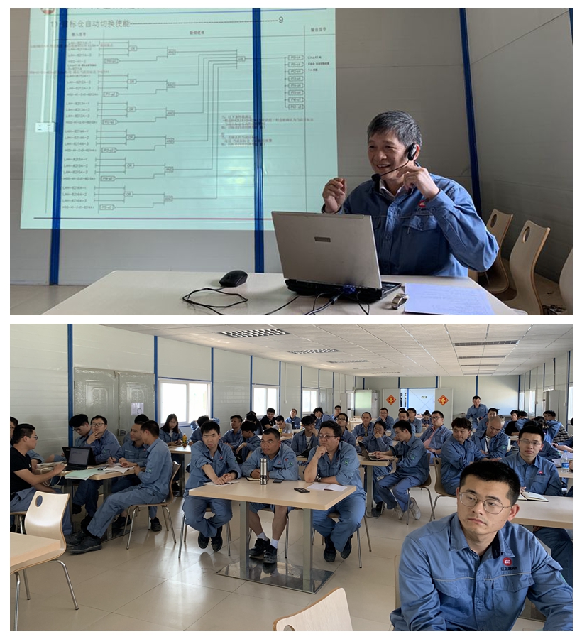 培訓(xùn)由工程部副總工程師王成林主講,從準(zhǔn)備工作,邏輯圖目錄編排(按輸出和功能)和PC站軟按鈕清單,氣流輸送的通常操作步驟,料倉的選擇、確認(rèn)及切換,氣動換向閥控制,輸送風(fēng)機的選擇、確認(rèn)、控制及風(fēng)機出口氣動蝶閥控制等,并以風(fēng)送A1線為例,做了具體邏輯的解讀。參訓(xùn)人員紛紛表示,受益良多,此次課程的邏輯學(xué)習(xí)也適用其他系統(tǒng),王成林副總工的工匠精神同樣值得我們學(xué)習(xí)。